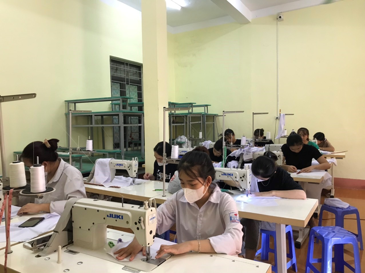 Hình ảnh: Các bạn HSSV nghề May thời trang được doanh nghiệp tiếp nhận vào làm việc sau khi tốt nghiệp với mức lương khoảng 8 triệu đồng/tháng
